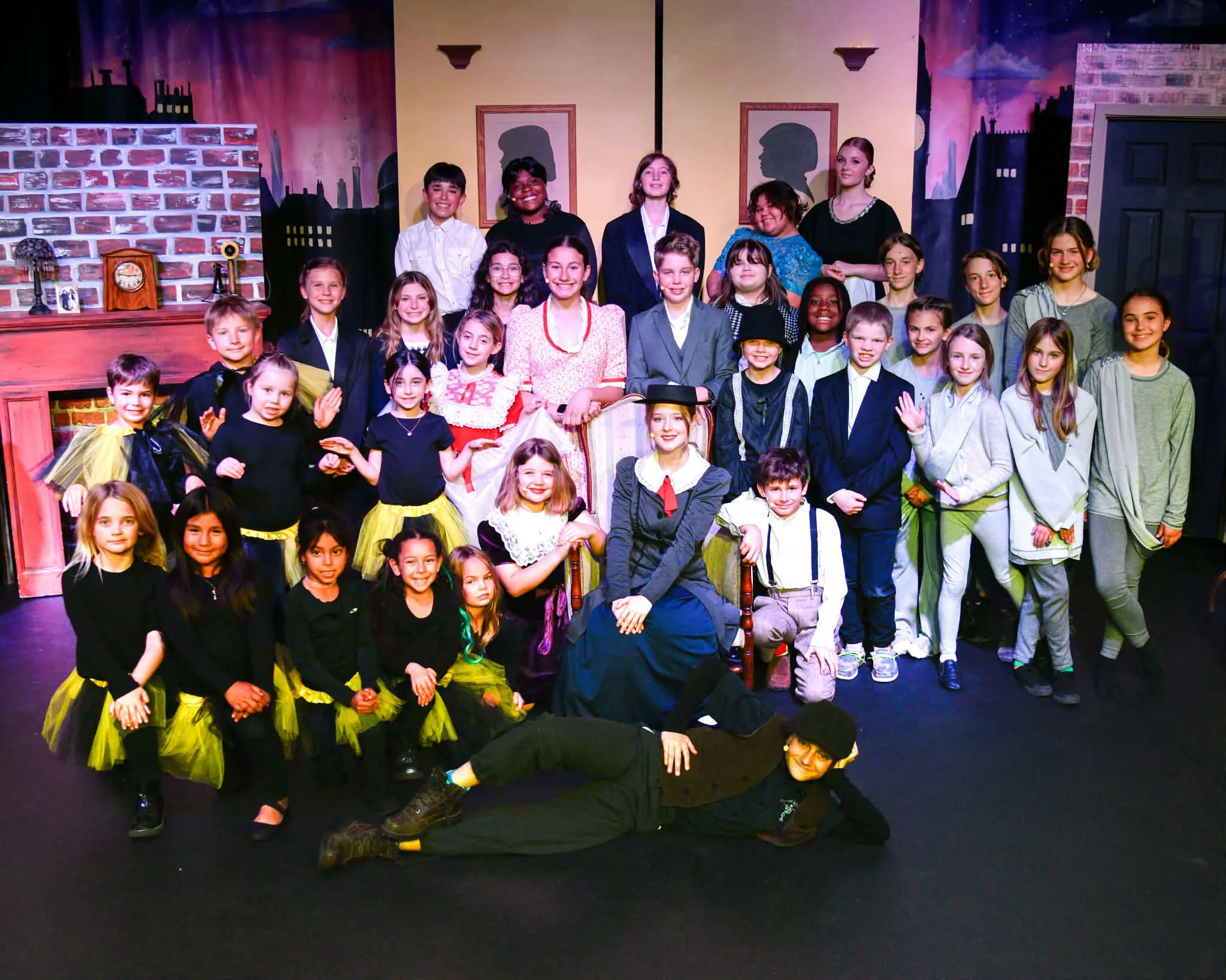 Synopsis: Based in London, the Banks household is in absolute shambles. Two mischievous children, one overwhelmed mother, and a father who thinks “quality time” is something you schedule between business meetings. After yet another nanny leaves in distress, the practically perfect Mary Poppins (Aurora) blows in and immediately takes charge. With the help of her cheerful, slightly chaotic friend Bert (Warner), Mary whisks Jane (Aiyla) and Michael (Silas) on magical adventures involving dancing statues, life lessons disguised as fun, and an outing on a rooftop. Along the way, the children learn how to behave (mostly), the adults learn how to feel things again, and the entire household discovers that maybe, just maybe, family matters more than being “proper.” Featuring catchy songs, a touch of magic, and enough chimney sweeps to make your stage manager nervous, Mary Poppins Jr. reminds us all that a spoonful of sugar helps…well, pretty much everything.